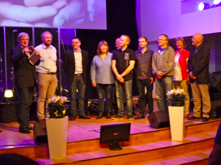 Den korta, men intensiva Ledarkonferensen 2012 är avslutad. De drygt 100 deltagarna från ca 20 församlingar i Svenskfinland fick den 19 maj vara med och bekräfta vad flertalet församlingar redan tidigare bejakat, nämligen att Finlandssvenska Pingst nu har en nationell ledare som har en referens/ledargrupp omkring sig. Som avslutning på konferensen kallade Kenneth Grönroos (till vänster) upp den nyvalde nationella ledaren Stefan Sigfrids med frun Marina, samt ledargruppen Fredrik Martin (Raseborg), Patrik Hellström (Jakobstad), Johan Forsbäck (Helsingfors, Edward Holmberg (Sibbo). Bakom dem stod Pelle Hörnmark från Svenska Pingst, samt Hanna och Jan-Erik Nyman (Tanzania) beredda att be en välsignelsebön över de nyvalda.