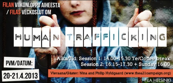 Den kristna församlingen har ett uppdrag att ställa sig på den svages sida, att erbjuda hjälp åt den slagne, att kämpa för rätt och rättvisa i samhället. Därför är det glädjande att Fila Helsingfors ordnar ett seminarium om människohandel på lördag 20.4. kl. 14-17.
