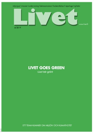 Tidningen Livets aprilnummer (2019) är grönt. Både pärm och innehåll pekar på den aktuella frågan kring miljö och klimat och hur vårt handlande påverkar den värld vi lever i. Hur ska en kristen förvalta det skapade och hur ska man förhålla sig till den miljödiskussion som inte minst många unga nu driver med stort engagemang?