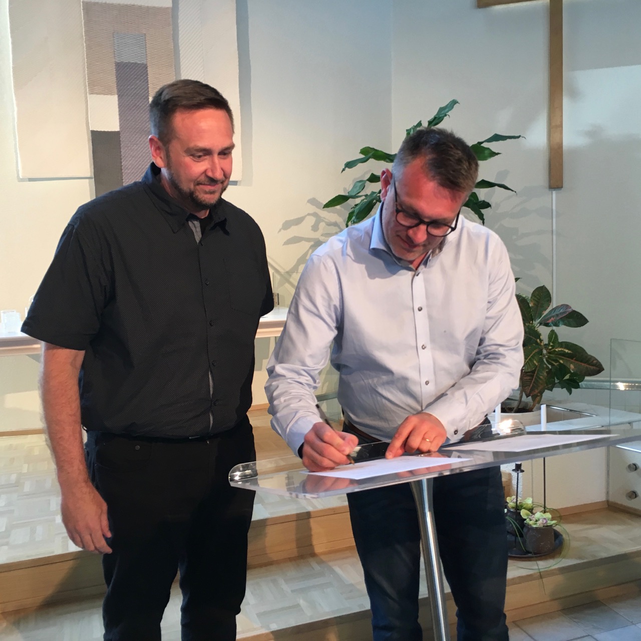Mika Yrjölä och Patrik Hellström undertecknade intentionsavtalet den 27 juni 2019 i samband med ledardagen som inledde Sommarkonferensen i Jakobstad (bilden). Mika är ledande pastor för Saalemförsamlingen i Helsingfors och ordförande för PiF, medan Patrik är föreståndare för Elimförsamlingen i Jakobstad, nationell ledare för FSP (Finlands svenska Pingst) och ordförande för FSPM (Finlands svenska Pingstmission rf).