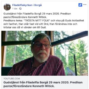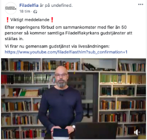 Flera pingstförsamlingar i vårt nätverk producerar både live och förproducerat material som de sänder via Facebook, Instagram eller Youtube. Vanligen länkar de även sina youtubevideon i Facebook. Här adresserna till deras Facebook-sidor så du lätt kan hitta deras sändningar.
