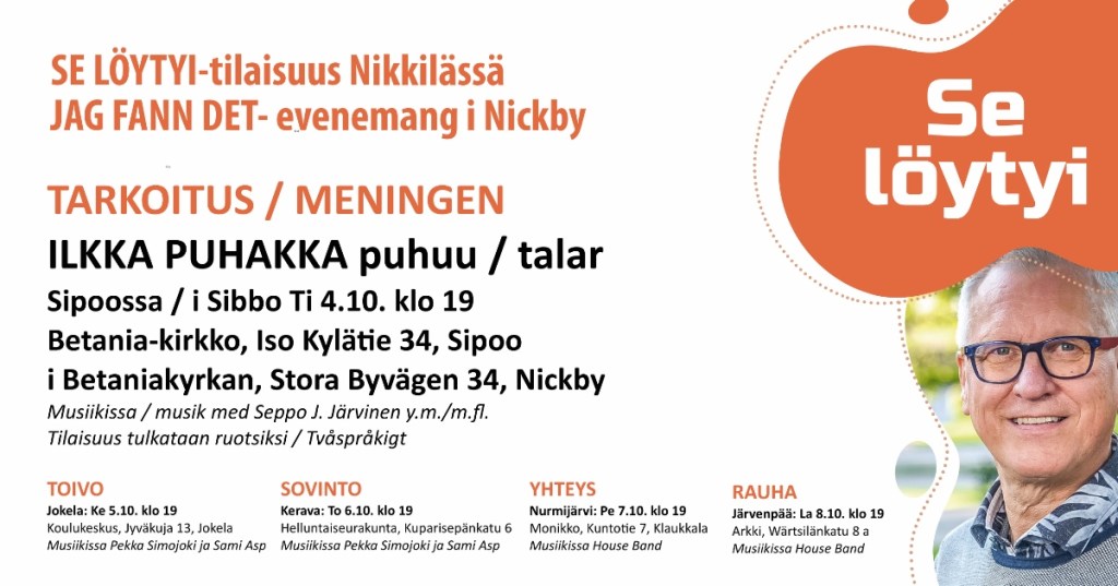 Under tiden 19.9-16.10.22 pågår den nationella kampanjen ”Se löytyi” som avser att nå så gott som alla finländare på något sätt via media eller via den lokala församlingens evenemang och diakonala insatser. 390 församlingar och 37 kristliga organisationer är med i kampanjen.
