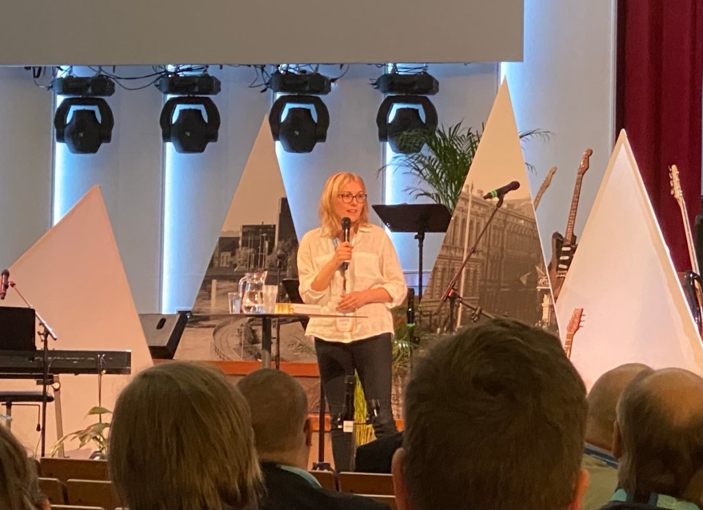 Den första talaren på torsdagen fokuserade på att våga, att vara modig (eller frimodig). Tanja Närhi från Saalem Helsingfors är lärare på IK-opisto (Hfors Campus) och har tillsammans med sin man börjat ett pionjärarbete i Kvarnbäcken. Hon utgick från Josuas liv och upplevelse och drog några användbara slutsatser från berättelsen.