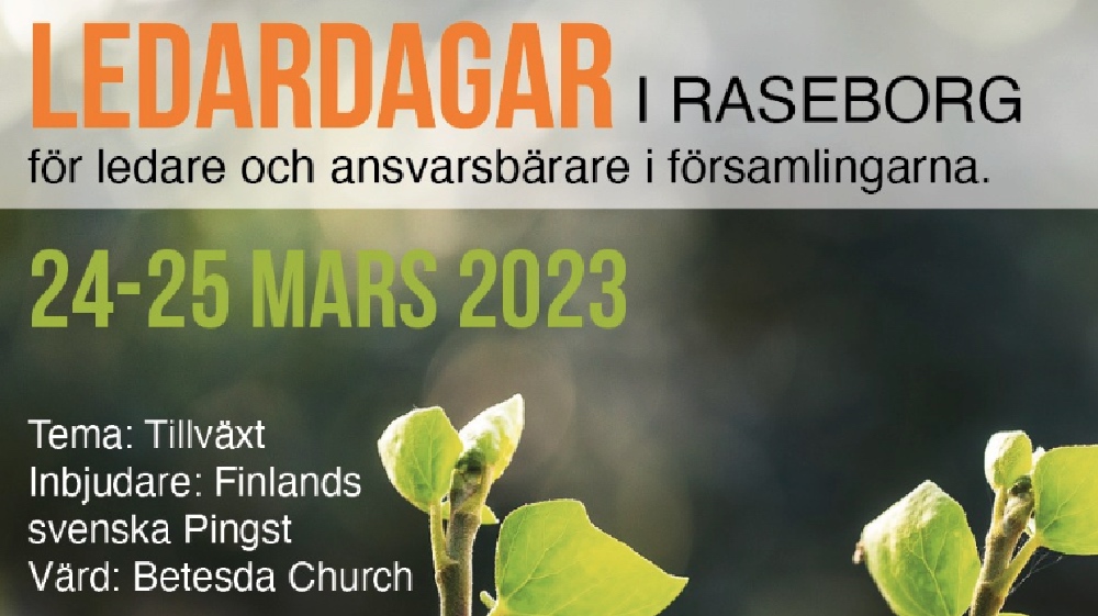 Vårens ledardagar för ledare och ansvarsbärare i de finlandssvenska pingstförsamlingarna arrangeras 24-25 mars 2023 i Raseborg, närmare bestämt i Betesda Church i Ekenäs. Förutom ett digert program av sessioner kommer deltagarna även att få bekanta sig med det hus som ska bli församlingens nya kyrka – nämligen den grundligt renoverade seminarieskolan som nu ska bli pingstkyrka. Församlingen har gjort renoveringen till största delen med frivilliga krafter och man har därför tagit tid på sig. Men nu börjar man vara på slutrakan och ett ibruktagande (invigning) torde ske senare detta år.