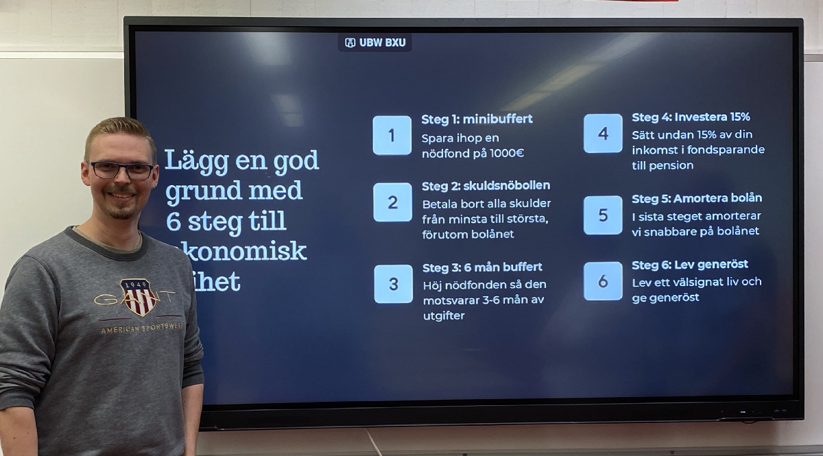 Markus konstaterade att de här råden skulle han själv ha behövt som 20-åring. Men det är aldrig försent att göra sig en budget och få kontroll över utgifterna så att prioriteringar och sparande blir möjligt. 20-åringarna i publiken fick nu en chans att från början ha bättre koll på sin ekonomi och lägga grunden för en stabil ekonomi som ger ökande trygghet in i framtiden. Men visst är det nyttiga råd också för alla oss andra, oberoende ålder.