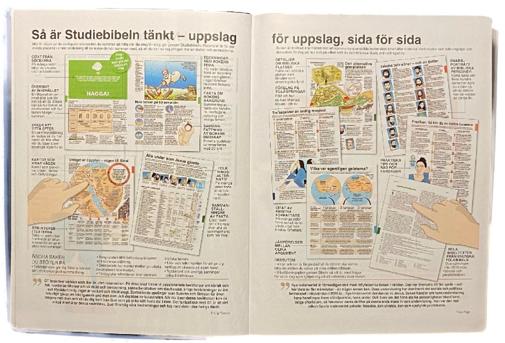En visuell bibel, ”Steg för steg studiebibel”, ger läsaren en massa hjälp via bilder, grafer och lättfattliga kommentarer och sammanställningar av textsammanhangen. Här har du alltså det du sökte efter: En alldeles unik studiebibel som verkligen hjälper läsaren att förstå mer!