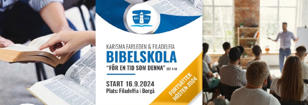 För den som vill gå på bibelskola kom glädjande besked om att bibelskolan ”För en tid som denna” får en fortsättning i höst. Under läsåret ht23-vt24 deltog sammanlagt 70 personer i bibelskolan, varav 12 personer på heltid. Höstterminen startar16 september 2024, information från och anmälning till Kenneth Witick – epost: kenneth@karismafarleden.fi