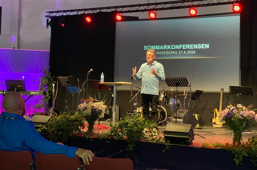 Patrik Abrams, FSP:s nationella ledare och pastor i Elimförsamlingen i Jakobstad, predikade i konferensens första möte (torsdag kväll, 27.6.2024) på temat: Ett ödmjukt hjärta