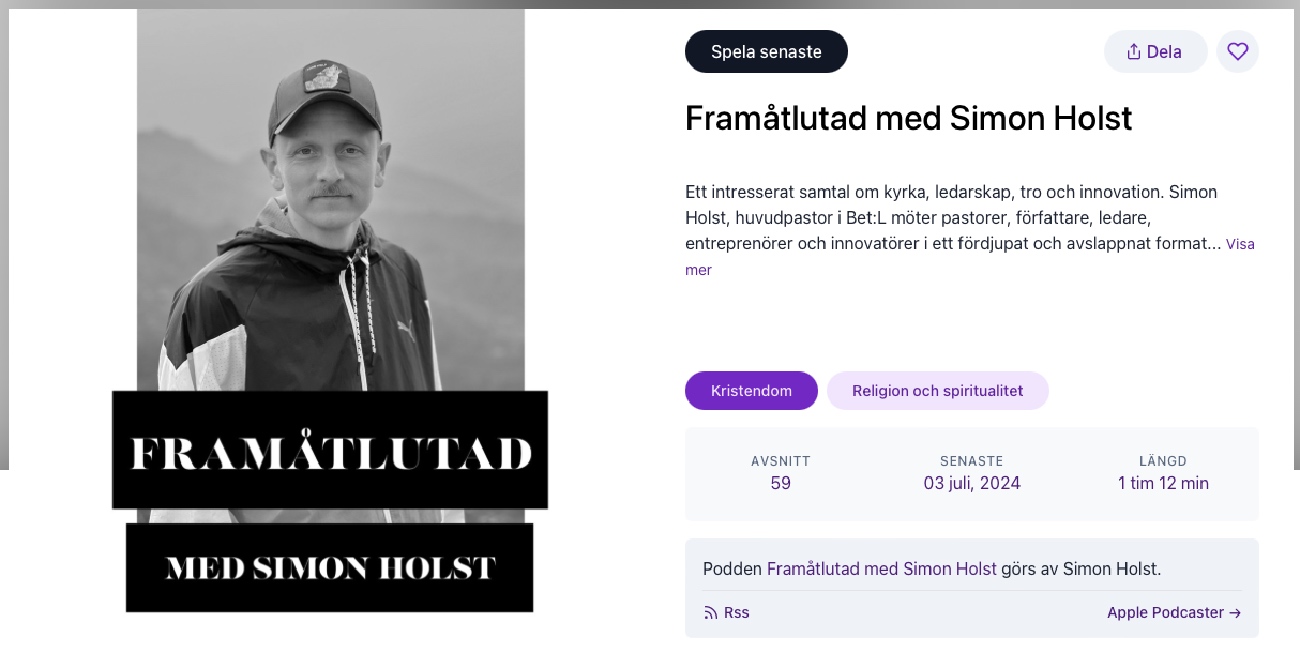 En riktigt intressant podd är ”Framåtlutad med Simon Holst”. Simon Holst är pastor i Skövde Pingst och har publicerat poddavsnitt sedan 2020, en podd i månaden ungefär. Han samtalar med intressanta människor om kyrka, ledarskap, tro och innovation. I podden från 3 juli kan du lyssna på det intressanta samtalet med Hans Weichbrodt om varför han satt i fängelse – och mycket mera…