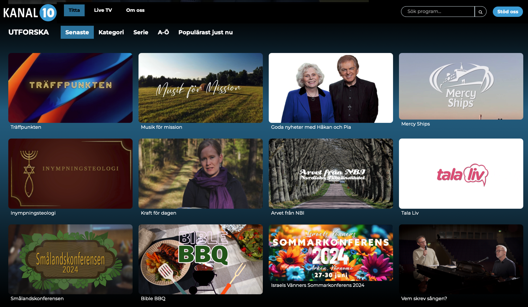 Kristen Media Sverige kommer bl.a. att göra en ny säsong av det populära musikprogrammet ”Alla tiders sånger” som nu ska produceras i Sverige (och inte i Nashville som den första säsongen). Återstår att se hur mycket de två kanalerna visar samma program. TBN Play ses via nätet på TBN Play, medan Kanal10 är en satellitkanal. Om Kanal 10 riktar sig till äldre tittare och TBN har en ungdomligare profil så kanske man fortsätter nischa sig enligt den uppdelningen. Det är också möjligt att man i huvudsak delar på programmen – med några gamla vänner kvar i Kanal 10 och en del ”modernare” program enbart på TBN. Tiden utvisar.