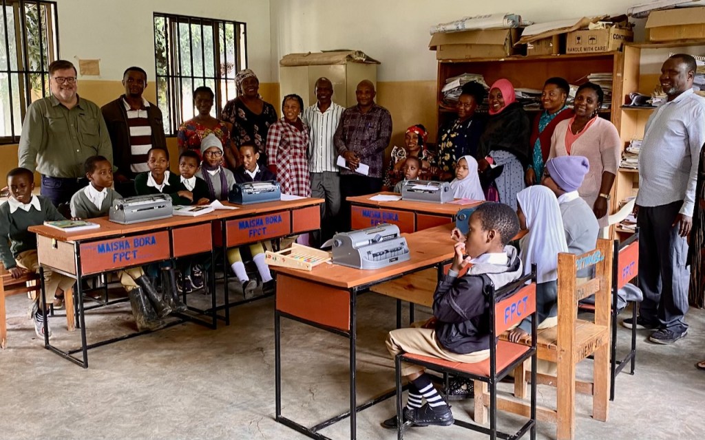 Vi besökte också en skola där det går 10 synskadade bland 1300 elever totalt. De har egna lärare och separat undervisning under första och andra klassen. Från tredje klassen integreras de med vanliga klasser. Maisha bora har hjälpt dem bl.a med pulpeter och stolar så att de bättre kan använda sina Perkins Braille-skrivmaskiner.