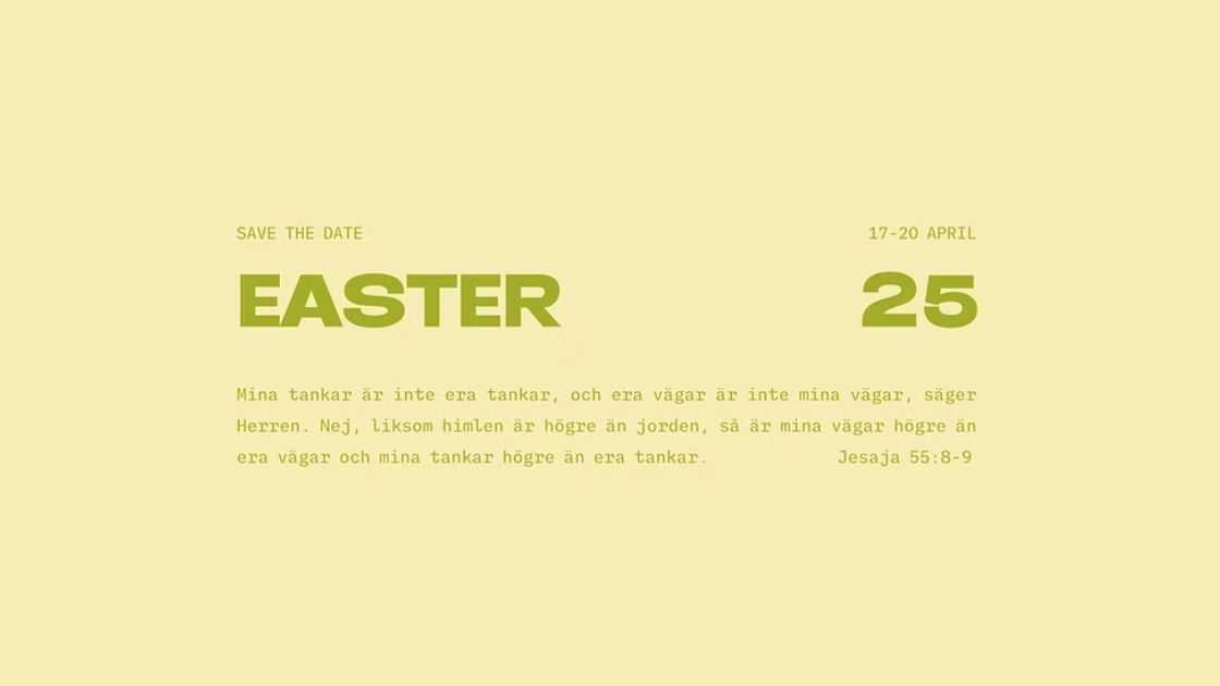 EASTER 25 börjar på skärtorsdagen 17 april 17:30 och avslutas med en stor festgudstjänst på söndag 11:00.