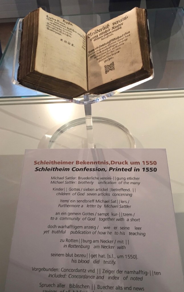 Ledare för den tidiga anabaptistiska rörelsen samlades år 1527 i staden Schleitheim, i Schweiz, till ett möte för att formulera gemensamma ståndpunkter. Man presenterade sedan sju artiklar (nedan i kort form) som man ansåg var nödvändiga att definiera för att klargöra några frågor man debatterat. De visar tydligt hur man strävade efter att församlingen bara skulle bestå av dem som menade allvar med tro och lärjungaskap.