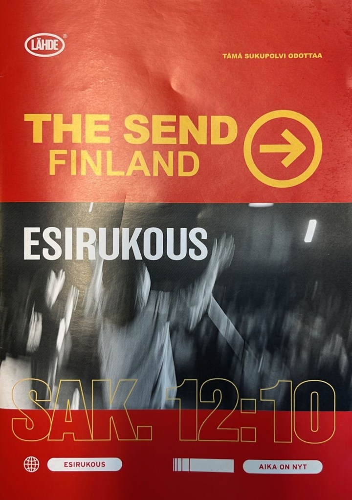 Lördagen den 7.6.25 samlades mer än 5000 entusiastiska unga till THE SEND-dag i Ishallen i Helsingfors. Dels var det en fortsättning på Världspingstkonferensen, med delvis samma talare. Dels var det en egen missionsdag arrangerad av THE SEND som är en ”kampanj för att aktivera troende till att leva en missional livsstil genom att adoptera och nå verkliga missionsfält både hemma och utomlands”.