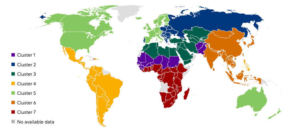 Undersökningen är gjord i samarbete med Gallup och först analyserade man data från 150 länder och sen har man under 2023 frågat 91139 människor i 85 länder. Man har identifierat och indelat världens länder i sju kluster utifrån gemensamma kännetecken inom klustren. Vill du bekanta dig närmare med datan för de enskilda klustren och länderna får du ladda ner hela rapporten på 106 sidor.