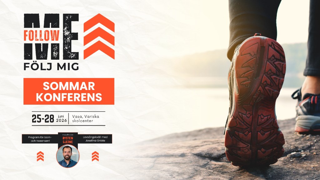 Pingstförsamlingarna i Svenskfinland inbjuder till FSP Sommarkonferens 2026. Tiden är som vanligt veckan efter midsommar, 25-28 juni och platsen blir Variska skola i Vasa, som också tidigare varit konferensplats. Temat för årets konferens är ”Follow me – Följ mig”, som rimligtvis hänvisar till Jesu kallelse till sina lärjungar. En av talarna är Øystein Gjerme, som är ledare för Pingst Norge sedan år 2020. Innan dess har han varit pastor i och grundare av församlingen SALT i Bergen. Det finns en utförlig artikel om pingströrelsen i Norge på Wikipedia för den som vill veta mera.