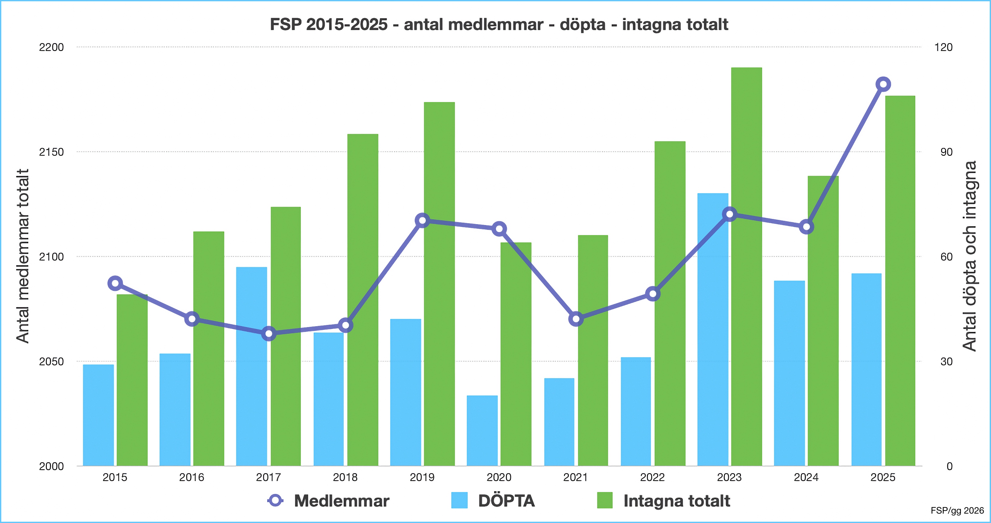Under 2025 har flera församlingar i nätverket FSP* döpt och välkomnat nya medlemmar. Totalt noteras en ökning i medlemsantalet med 68 personer. Hälften av den ökningen kommer från Fila Church Helsingfors som ökat med 36 medlemmar under 2025. Församlingen har ökat stadigt varje år sedan 2016, men senaste års ökning är den största hittills. Pingst Åland, Betesda Raseborg, Betel Karis, Pingst Vålax, Filadelfia Borgå, Sion Vasa och Elim Jakobstad har också vuxit under 2025.