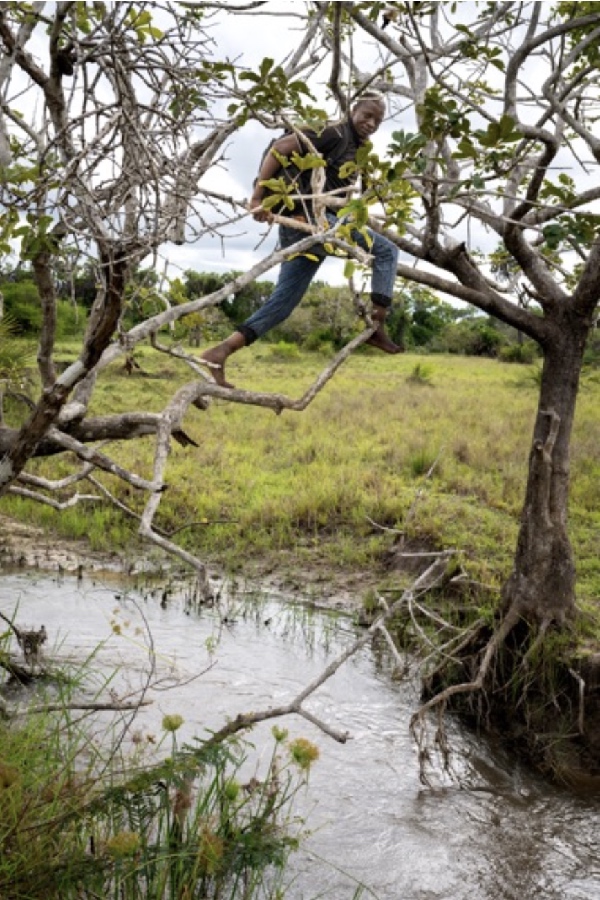 ”Men vi har en bro”, berättade han med glimten i ögat. Han klättrade upp i ett träd vid floden. Grenarna mötte grenar från ett träd på andra sidan. ”Här kan vi ta oss över när vattnet är för högt”. Snabbt hade han klättrat upp i ena trädet och ner på andra sidan. Vi stod lite snopna och såg på. Istället kavlade vi upp byxorna, tog av skorna och vadade över floden.