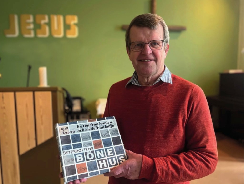 Kjell Herberts med första boken om bönehusen (Bild från Livet)