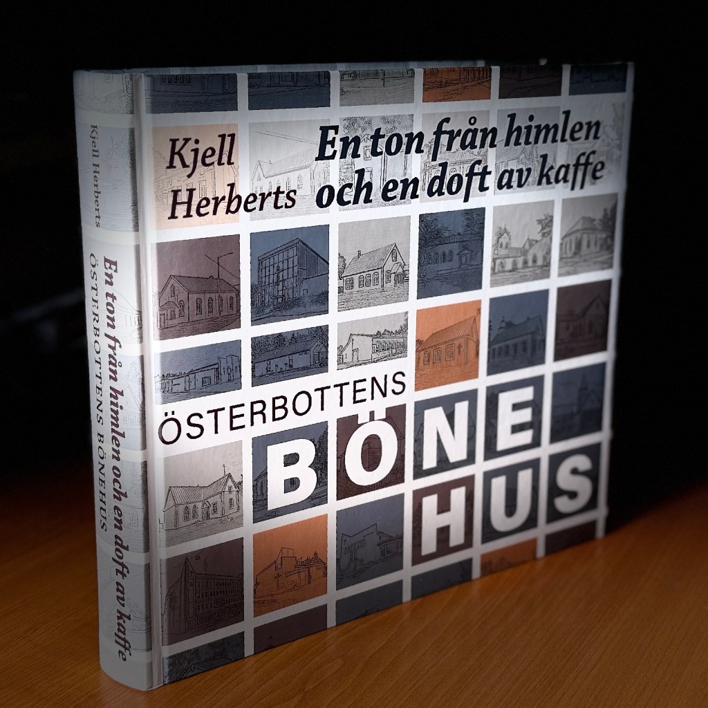 Boken om de österbottniska bönehus inkluderar både nuvarande och tidigare bönehus . En hel del har byggts redan i slutet av 1800-talet och i början av 1900-talet. Utvecklingen har gått mot allt färre bönehus i byarna och många tidigare bönehus faller i glömska då de rivits eller tagits i annat bruk. Så Kjell Herberts har gjort och gör en viktig dokumentation om livet i bönehusen medan det ännu finns människor som minns. Boken ”En ton från himlen och en doft av kaffe” är en fascinerande ”coffee table book” med fakta och anekdoter om alla bönehusen. Du kan beställa den från Adlibris.