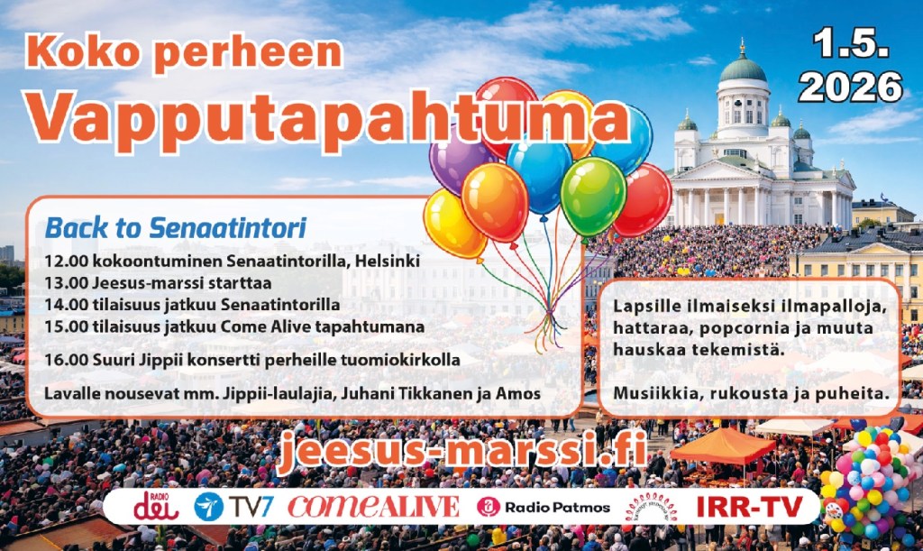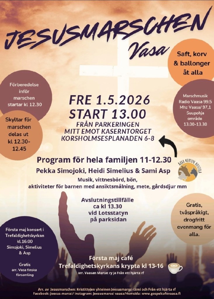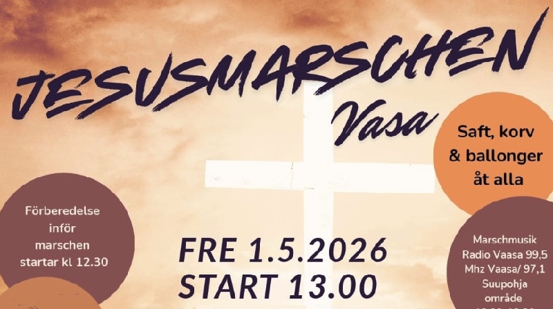 Den som vill vara med på en glad, familjevänlig Jesus-marsch på 1:a maj har möjlighet till det i Vasa och Helsingfors. I Finland ordnas Jesus-marscherna på 1:a maj, i andra länder lite senare, Marscherna är samarrangemang med många olika församlingar och organisationer som bakgrundsarrangörer med föreningen Kristityt yhdessä (Radio Dei) som koordinerande organisation i Helsingfors. I Vasa är det Gospel Cafe Vasa som koordinerar. Jesus-marscher ordnas i många städer runtom i världen, i t.ex London ordnas den under pingsthelgen.